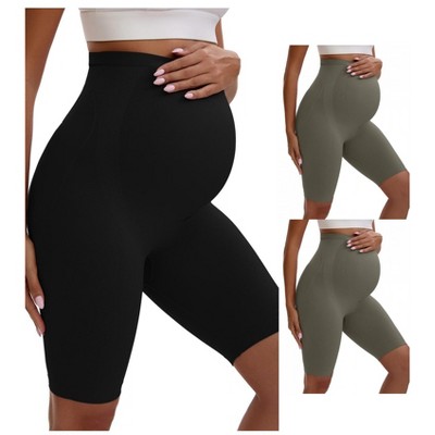 INSPIRE CHIC Women's High Waist Maternity Thigh Slimmers Belly Support Soft Pregnancy Butt Lifter Control Panties 2 Packs 1 Gray+1 Black Small