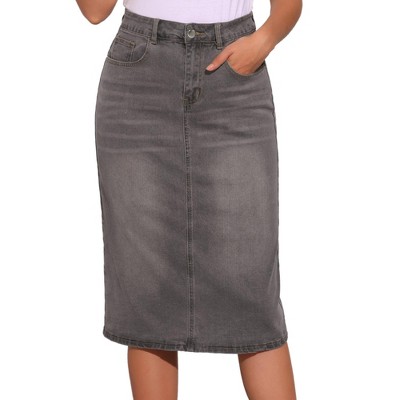 INSPIRE CHIC Women's High Waist Split Hem Casual Denim Pencil Skirt Large Dark Grey