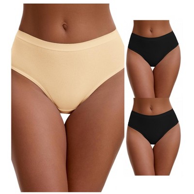 INSPIRE CHIC Women's High Waist Tummy Control Full Coverage Briefs Breathable Panties 3 Packs 2 Black and 1 Beige Large