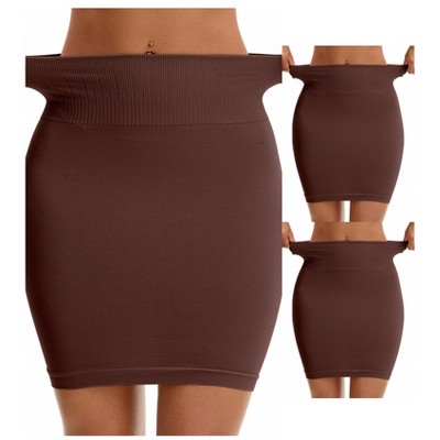 INSPIRE CHIC Women's High Waist Tummy Control Under Skirt Seamless Half Slips Shaping Under Mini Dress 2 Packs 2 Brown Medium