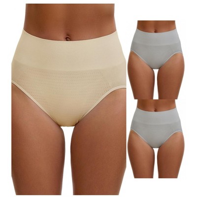 INSPIRE CHIC Women's High Waisted Butt Lifter Briefs Tummy Control Underwear, Available in Plus Size 3 Packs 2 Gray and 1 Beige XX-Large