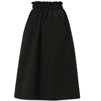 • This skirt is made up of several design points: high rise, elasticated waist at back, side zipper, and midi length