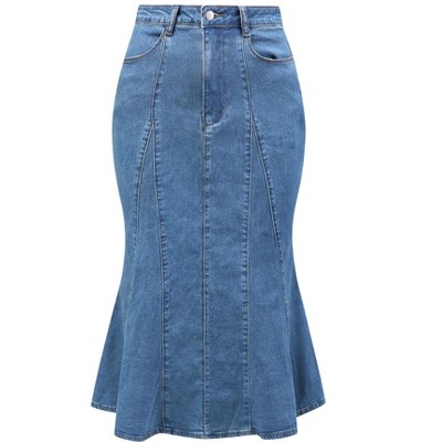 INSPIRE CHIC Women's High Waisted Flared Skirts for 1950s Solid Color Business Fishtail Midi Skirt Navy Blue Small