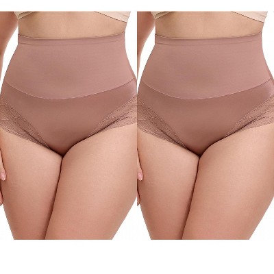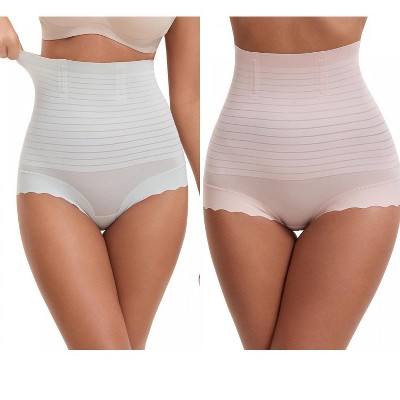 INSPIRE CHIC Women's High Waisted Invisible Tummy Control Stripe Mesh Shapewear Panties 2 Packs