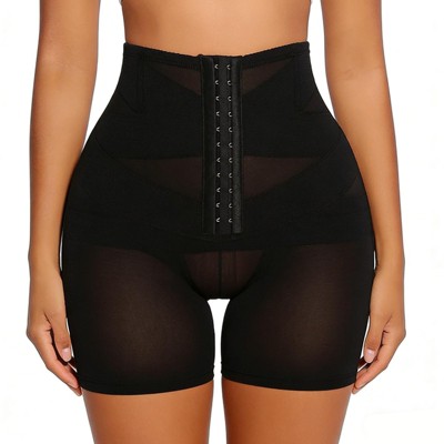 INSPIRE CHIC Women's High Waisted Seamless Shaping Tummy Control Slimming Underwear Boyshorts 2 Packs 1 Black+1 Beige Large