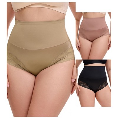 INSPIRE CHIC Women's Hook Zipper Front Closure Slimming Waist Butt Lifter Control Panties Briefs 2 Packs 1 Black+1 Beige 3X-Large