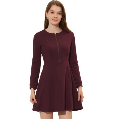 • Houndstooth Plaid Pattern, Crew Neck, Long Sleeve, Contrast Trim, Button Front, A-Line, High Waist, Above Knee, Invisible Back Zipper, Slightly Stretchy