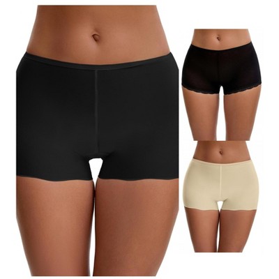 INSPIRE CHIC Women's Seamless Ice Silk Lace Trim Slip Shorts for Under Dresses Lightweight Boyshorts 3 Packs - 1 of 4