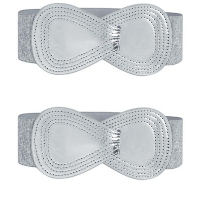 INSPIRE CHIC Women's Interlock 8-shaped Faux Leather Buckle Elastic Belt 1 Pc Metallic Silver Fit Waist Girth:37"/93.5cm-49"/124cm