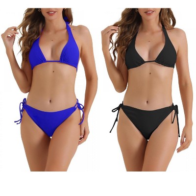 INSPIRE CHIC Women's Knot Twist Halter Double Straps Tie Back Bra Triangle Bottoms Swimwear Bikini Sets 2 Sets - 1 of 4