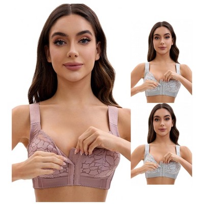 - Lace, Front Closure, Full Coverage, Minimizers, Wirefree, Wide Straps, Soft Bras