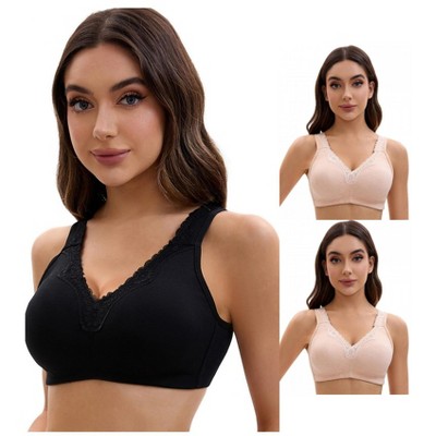 INSPIRE CHIC Women's Lace Front Closure Full Coverage Minimizers Wirefree Wide Straps Soft Bras 3 Packs