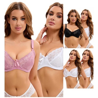 INSPIRE CHIC Women's Lace Front Closure Push Up Underwire T Back Bras 2 Packs 1 White+1 Grey 42D