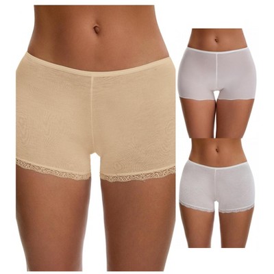 INSPIRE CHIC Women's Lace Ice Silk Hollow Out Mid Rise Comfort Boyshorts Briefs 3 Packs 1 Beige and 2 White Large