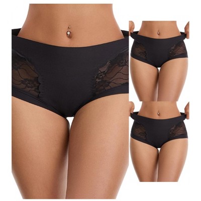 INSPIRE CHIC Women's Lace Ice Silk Hollow Out Mid Rise Comfort Boyshorts  Briefs 3 Packs - 1 of 4