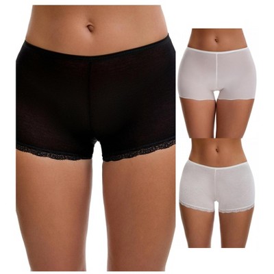 INSPIRE CHIC Women's Lace Ice Silk Hollow Out Mid Rise Comfort Boyshorts  Briefs 3 Packs - 1 of 4