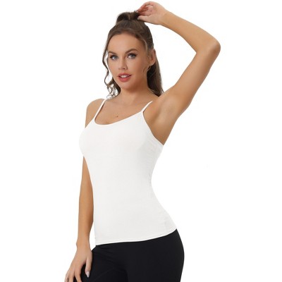 INSPIRE CHIC Women's Lace Mesh Back Open Adjustable Spaghetti Strap Fixed Cup Light and Breathable Camisoles Medium White
