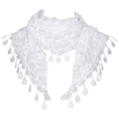 INSPIRE CHIC Women's Lace Mesh Fringe Triangle Shawls Scarves 1Pc White 190x72cm/74.8x28.3"