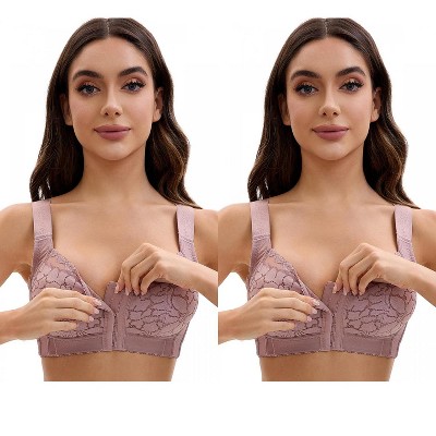 INSPIRE CHIC Women's Lace Mesh Full Coverage Underwire Soft Cup Light and Breathable Push Up Bras 2 Packs