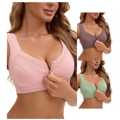 INSPIRE CHIC Women's Lace Mesh Full Coverage Underwire Soft Cup Light and Breathable Push Up Bras 3 Packs 2 Pink+1 Beige 42D