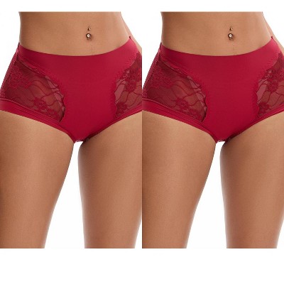 INSPIRE CHIC Women's Lace Mid Waisted Soft Breathable Briefs Underwear 2 Packs 2 Dark Grey XX-Large