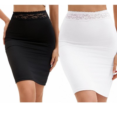 INSPIRE CHIC Women's Lace Trim Anti-Static Slip Knee Length Half Slips Lightweight Underskirt 2 Packs 1 White+1 Beige Large