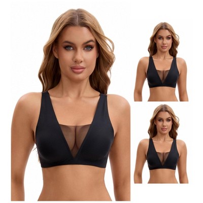 INSPIRE CHIC Women's Lace Trim V-Neck Wireless Everyday Adjustable Spaghetti Straps Lift-Up No Trace Bralette X-Large Black