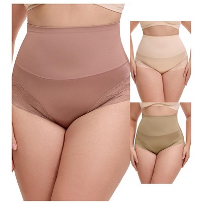 INSPIRE CHIC Women's Lace Trimmed Underwear Tummy Control High Waisted Soft Breathable Full Coverage Briefs 2 Packs 1 Beige+1 Coffee X-Large