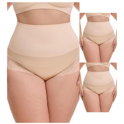 INSPIRE CHIC Women's Lace Trimmed Underwear Tummy Control High Waisted Soft Breathable Full Coverage Briefs 2 Packs 2 Beige XX-Large