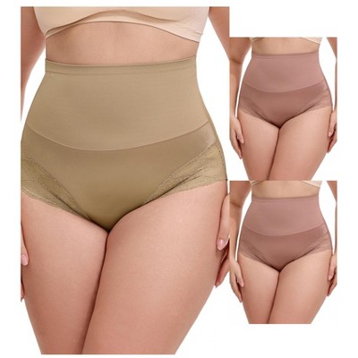 INSPIRE CHIC Women's Lace Trimmed Underwear Tummy Control High Waisted Soft Breathable Full Coverage Briefs 2 Packs