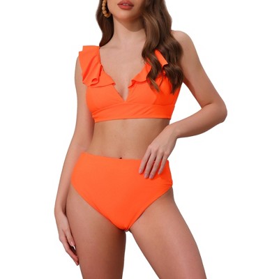 INSPIRE CHIC Women's Lace Up Decoration Push Up Bikini Sets, Wide Strap Top Triangle Bottom Swimwear Bathing Suits 1 Set Orange X-Small