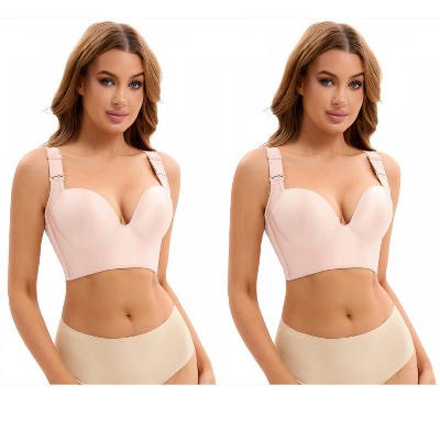 INSPIRE CHIC Women's Lace Zip Front Closure Full Coverage Wirefree Wide Straps V Back Padded Bras 2 Packs
