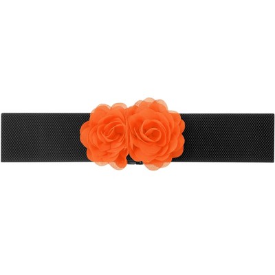 INSPIRE CHIC Women's Large Chiffon Rose Double-Flower Elastic Stretch Wide Corset Waist Belt 1 Pc Orange