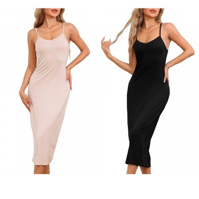 INSPIRE CHIC Women's Lingerie Ruffle Sleeveless Soft Nightgown V Neck Chemise Sleepdress X-Small Black/White