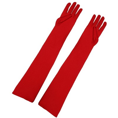 INSPIRE CHIC Women's Long Satin Finger with Tassels Elbow Length Sleeves Gloves for Opera Dance Wedding Party 1Pair Red