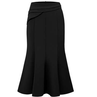 INSPIRE CHIC Women's Mermaid High Waisted Pleated Fishtails Midi Skirt Small Black
