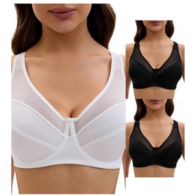 INSPIRE CHIC Women's Mesh Lace Adjustable Strap Underwear Soft Bras with Support Full Coverage Bra 2 Packs