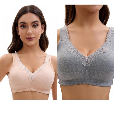 INSPIRE CHIC Women's Mesh Lace Adjustable Strap Underwear Soft Bras with Support Full Coverage Bra 2 Packs