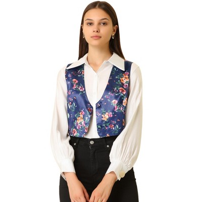 INSPIRE CHIC Women's Metallic Faux Leather Lapel Collar Zip Sleeveless Cropped Vest