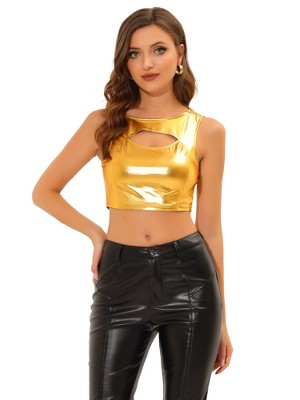 INSPIRE CHIC Women's Metallic Sleeveless Regular Fit Party Holographic Camisoles X-Small Light Gold