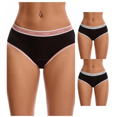 INSPIRE CHIC Women's Mid Rise Letter Print Contrast Binding Leak Proof Underpants 2 Packs