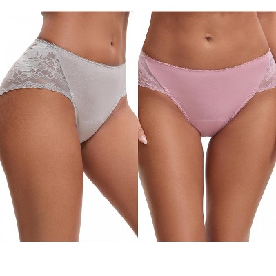 INSPIRE CHIC Women's Mid-Waisted Briefs Smooth Silky Panties Soft Lace Breathable Underpants 2 Packs