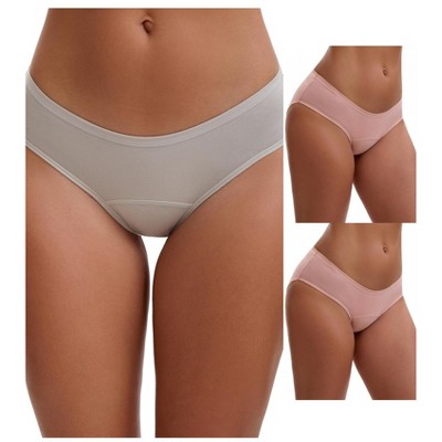INSPIRE CHIC Women's Mid-Waisted Lace Briefs HI-Cut Period Leak Proof Ladies Underpants 3 Packs 2 Pink 1 Beige Medium