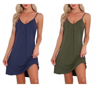 INSPIRE CHIC Women's Nightdress Soft Comfy Sleepwear Loungewear Nightgown Spaghetti Strap Crewneck Nightdress X-Small 2 Pack Green