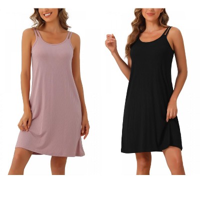 INSPIRE CHIC Women's Nightgown Chemise Double Shoulder Straps Jersey Knit Scalloped Lace Trim V Neck Sleepdress Small Black