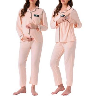 INSPIRE CHIC Women's Nursing Pajama Set Adjustable Waistband Pants Long Sleeve Postpartum Breastfeeding Loungewear Large Pink