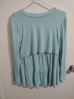 INSPIRE CHIC Womens Nursing Shirts Breastfeeding Tiered Pleated Tunic Long Sleeve Stretchy T-Shirt Postpartum Maternity Large Blue