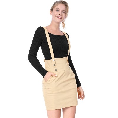 INSPIRE CHIC Women's Pleated A-Line Elastic Waist Mini Braces Suspender Skirt Light Khaki X-Large