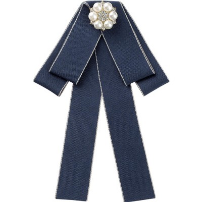 INSPIRE CHIC Women's Pre-Tied Long Ribbon Bowknot Faux Pearl Brooch Pin Tie Blue One Size