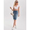 The Women's Denim Skirt is designed to elevate your style with its vintage look and regular fit. Featuring a raw hem, high waist, back slits, and pockets, this pencil skirt offers a bodycon silhouette in multiple colors to choose from. It is knee-length and has a classic button-down front, making it a versatile and timeless addition to your wardrobe. Pair this denim skirt with a denim jacket or top to create a fashionable yet practical outfit. Perfect for casual outings such as home, street, trips, outdoor activities, dates, shopping, and travel, this skirt is a chic addition to any wardrobe. Style it with a basic tee and sneakers or high heels for a chic, urban-inspired look. Care instructions include turning inside out and machine washing cold with like colors.
